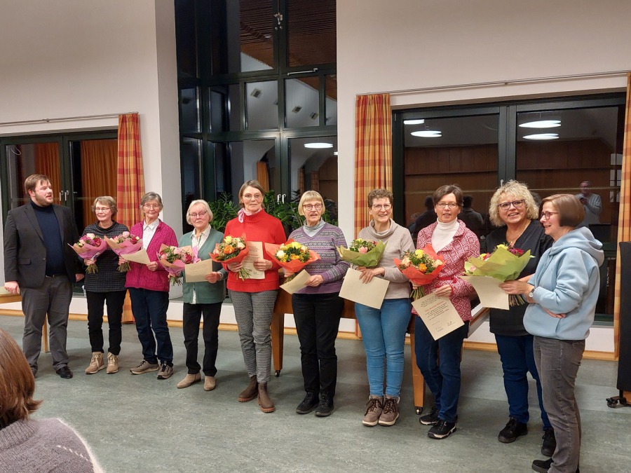 Geehrt wurden Barbara Anegg, Barbara Schlepphorst und Joachim Hellemann für 25 Jahre, Karl Lückheide für 40 Jahre und Cilly Niemeyer für 60 Jahre aktive und treue