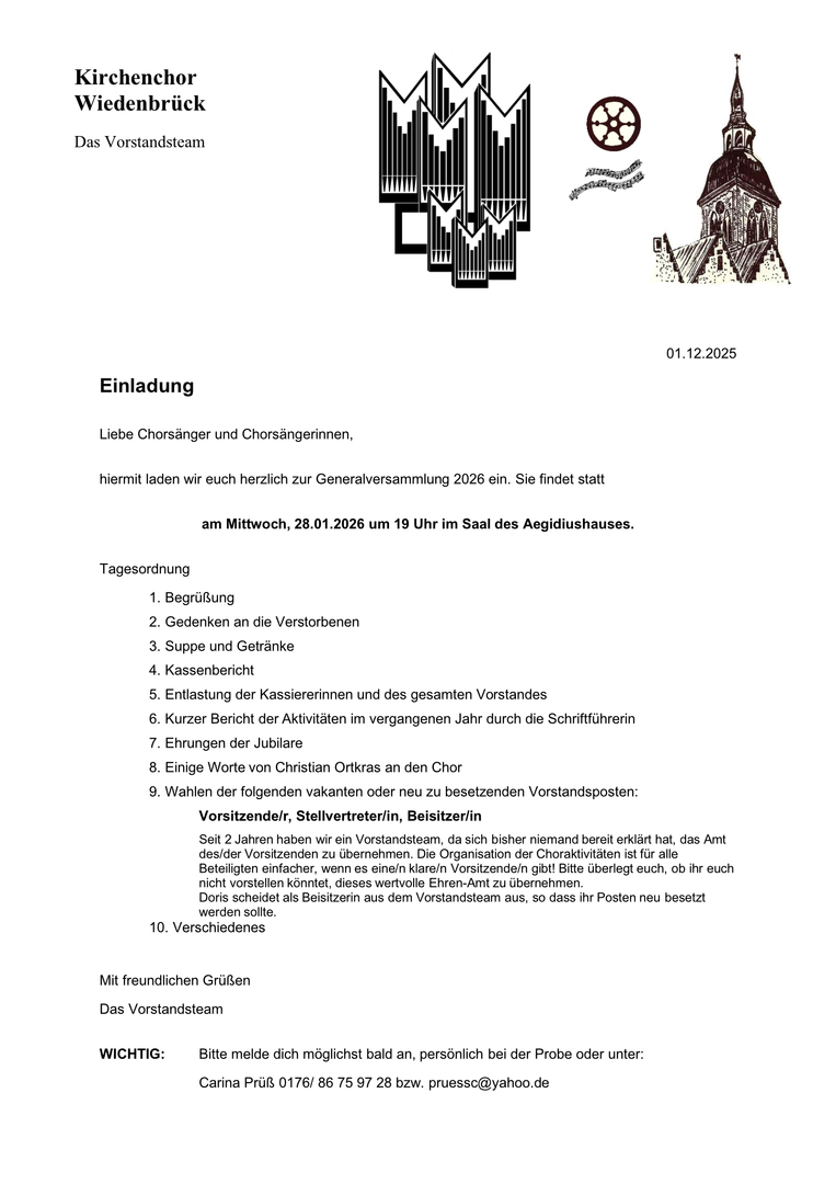 Mitteilung des Kirchenchores Wiedenbrück____________________________21.11.2025