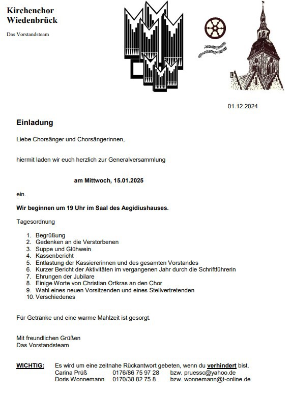 Mitteilung des Kirchenchores Wiedenbrück____________________________17.01.2024